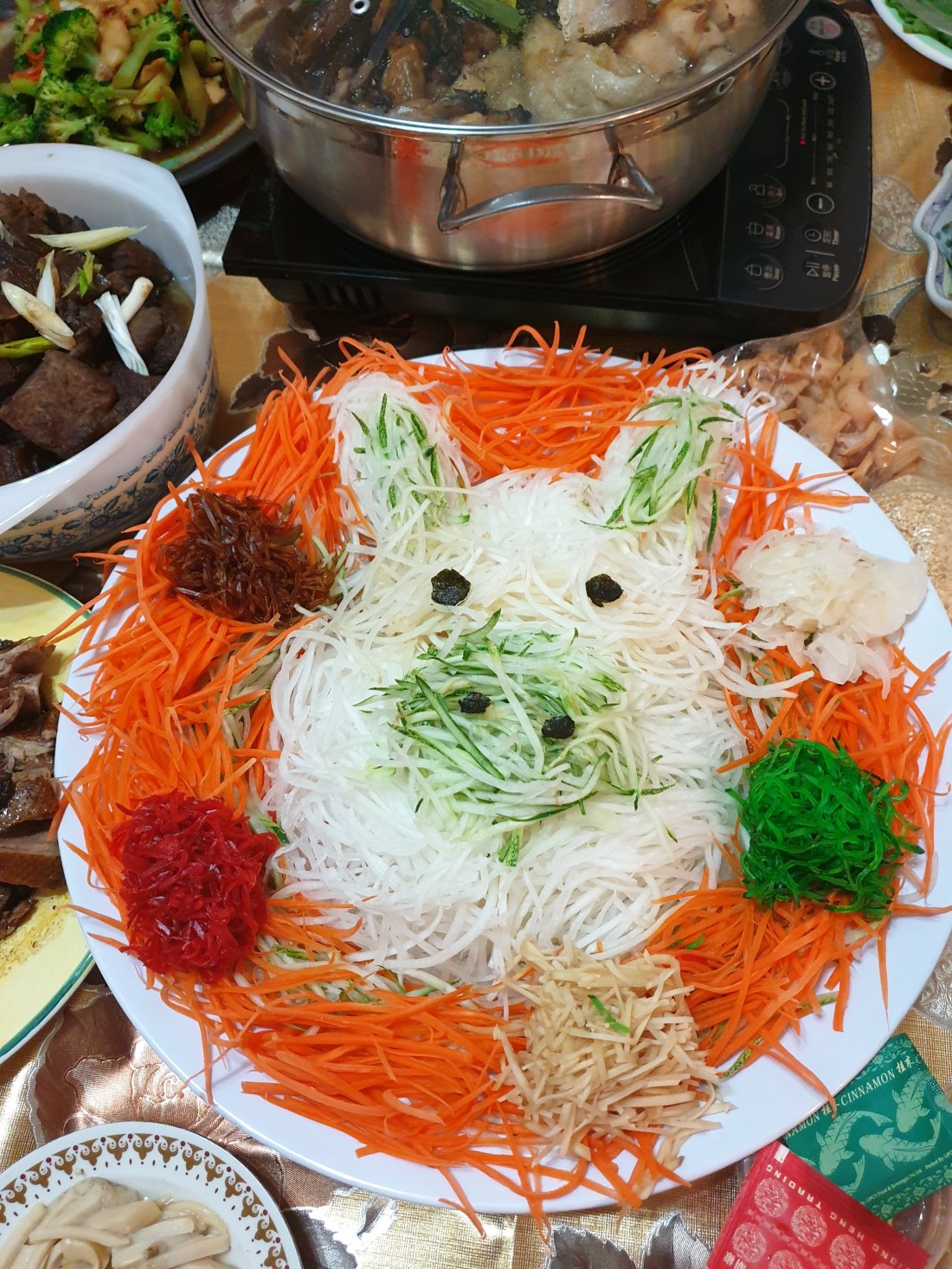 This year Chinese zodiac is Pig. So my dad and sister, created this yusheng.